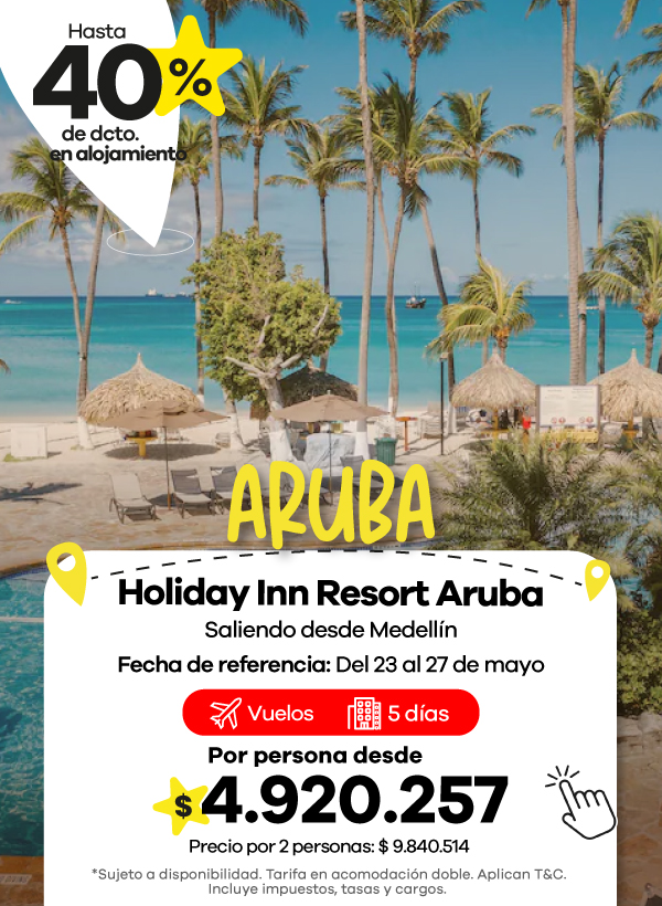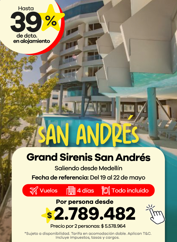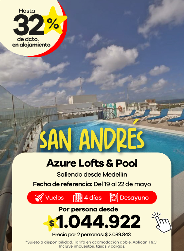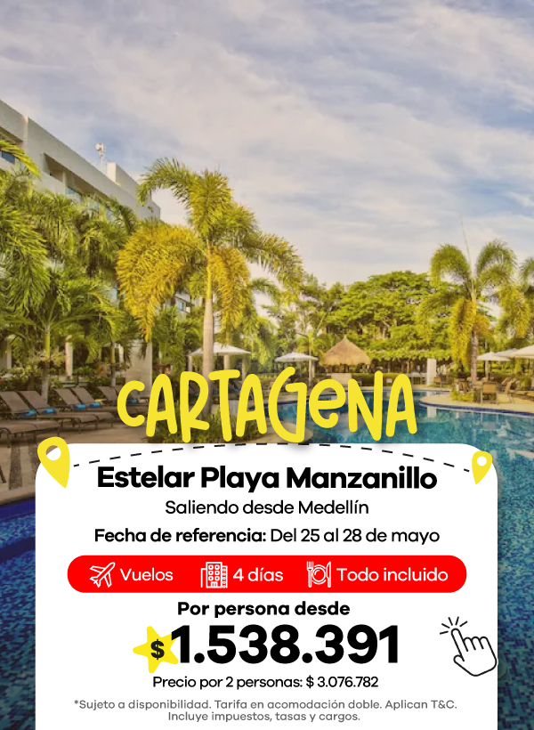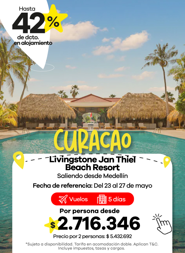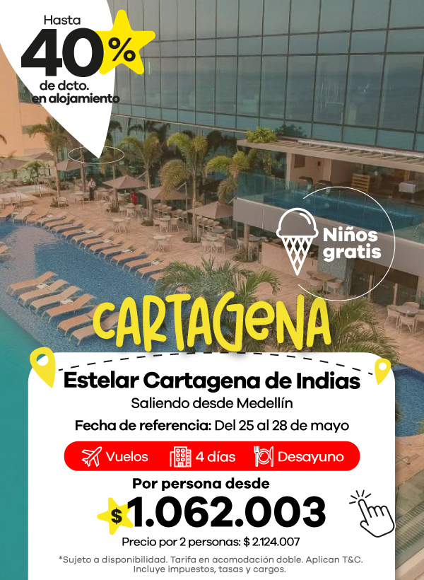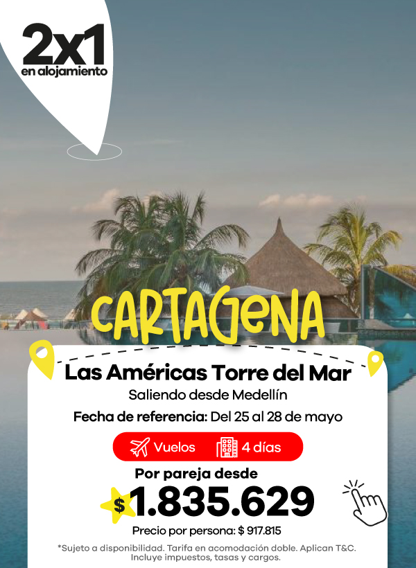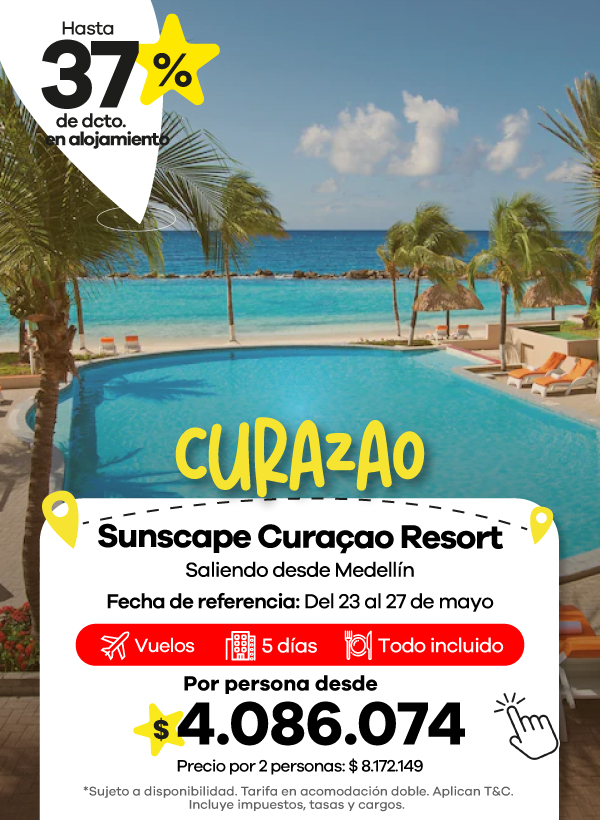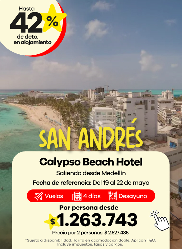 Además, contamos con agencias de viajes en Medellín, Bogotá y Cali listas para asesorarte. Aquí podrás encontrar las mejores ofertas en vuelos y paquetes que se ajustan a tu presupuesto. También aceptamos todos los medios de pago, con la posibilidad de realizar tu pago en cuotas, para que organices tu viaje de manera más flexible.