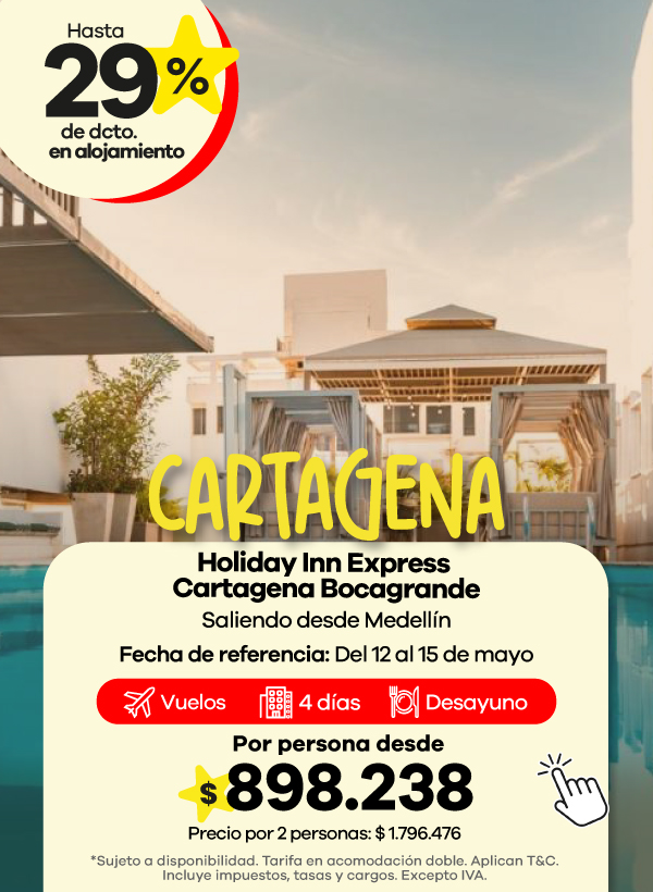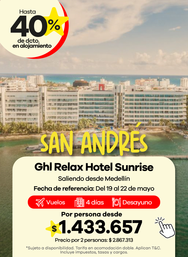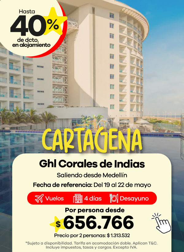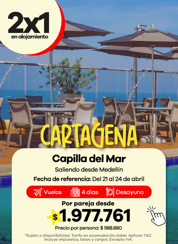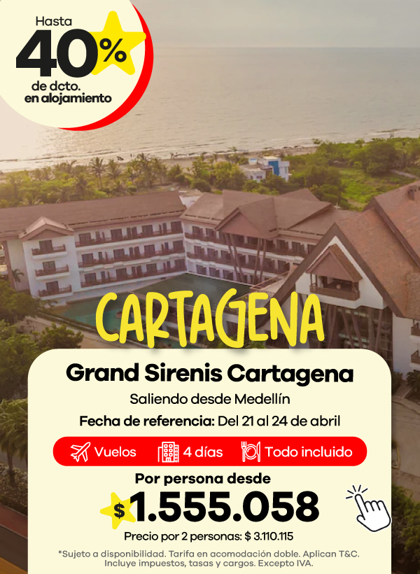 Encuentra ofertas Outlet de viajes con descuentos en paquetes a destinos como Cartagena, San Andrés y Santa Marta.
