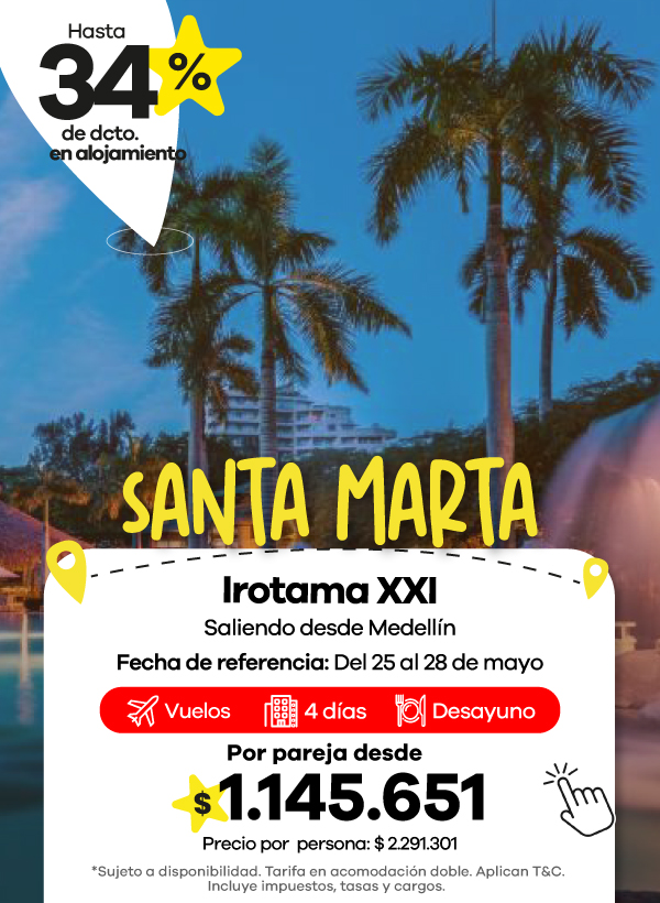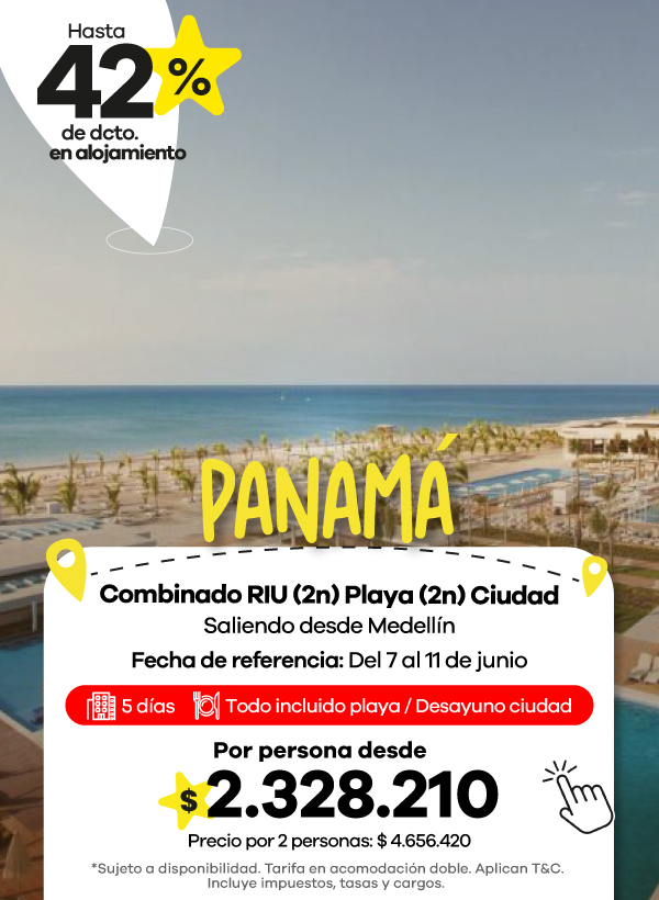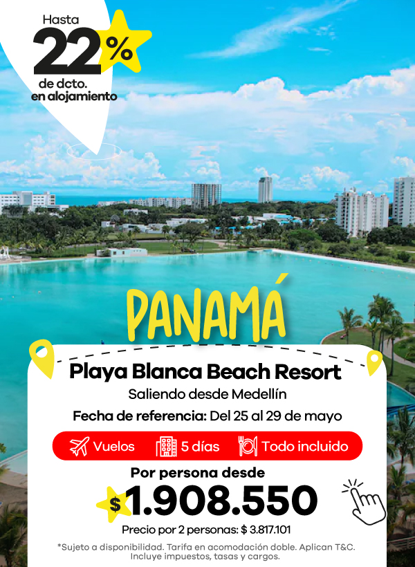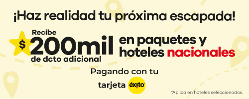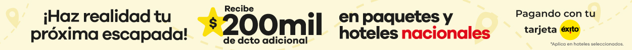 En Viajes Éxito encontrarás una amplia oferta de paquetes de viajes que incluyen todo lo que necesitas para disfrutar al máximo. Vive experiencias únicas con nuestros viajes a Panamá, sumérgete en la magia del Caribe con los planes a Punta Cana, o disfruta de playas y cultura con los mejores viajes a San Andrés.