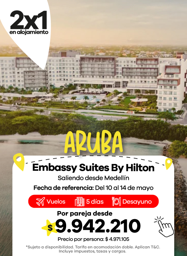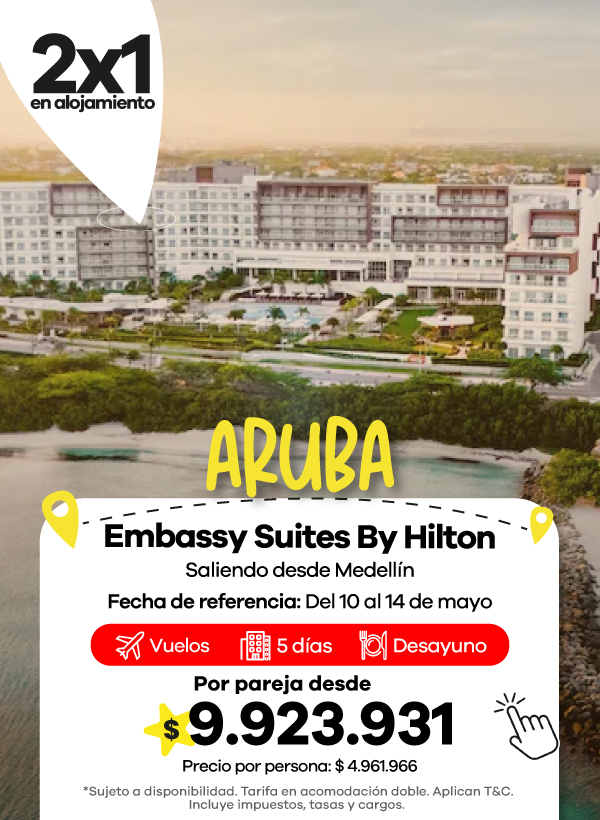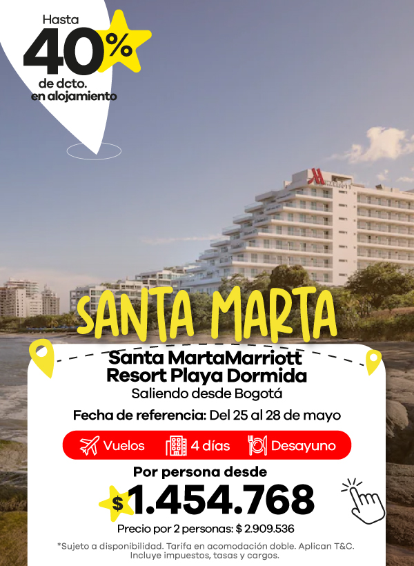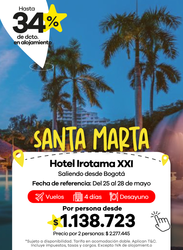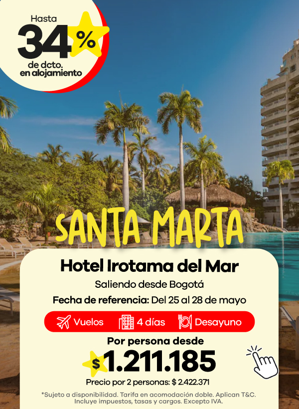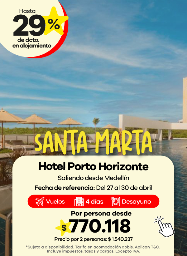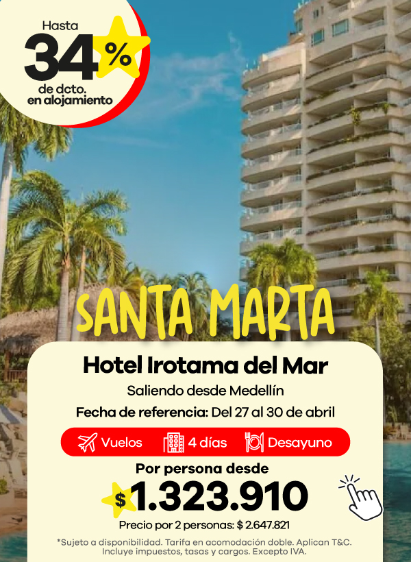 Los paquetes de Viajes Éxito generalmente incluyen vuelo, hotel e impuestos, para que puedas planear tu viaje en una sola reserva. Dependiendo del hotel, el plan de alimentación puede variar e incluir solo alojamiento, desayuno o alimentación todo incluido.