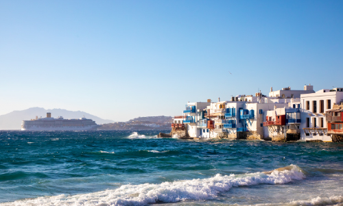 Desayuno. Llegada al Pireo (Atenas) a las 07:00. Tiempo libre para explorar por tu cuenta: puedes apuntar hacia el centro histórico o simplemente disfrutar del ambiente ateniense. A las 12:00, salida rumbo a Mykonos, famosa por sus calles blancas, molinos y vida animada. Más tarde, el crucero continúa hacia Santorini. Noche a bordo.