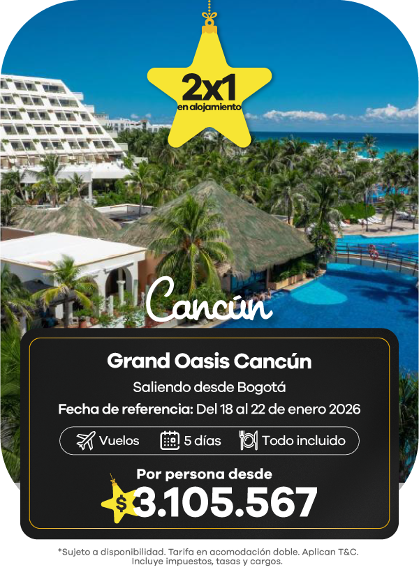 En Viajes Éxito te ofrecemos las mejores ofertas de paquetes de viaje para que disfrutes de unas vacaciones memorables, ya que en el hotel de tu elección tendrás alimentación, bebidas, snacks, acceso a diferentes eventos, lugares y actividades para que compartas gratos momentos en tu descanso. ¡Aprovecha nuestros paquetes de viaje todo incluido!