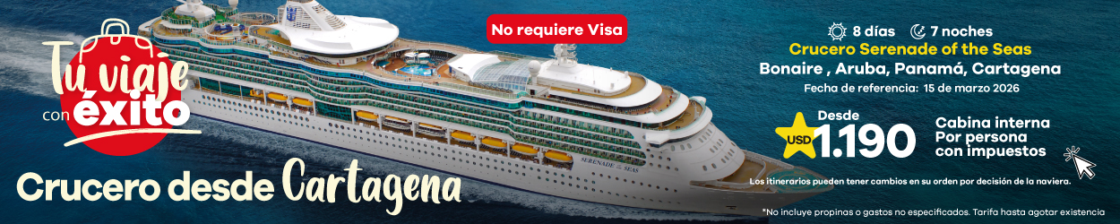Salida desde: Cartagena/Colombia, Curazao, Oranjestad Aruba, Colon, Cartagena/Colombia Nota: Los itinerarios pueden tener cambios en su orden por decisión de la naviera.