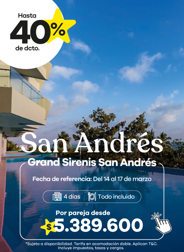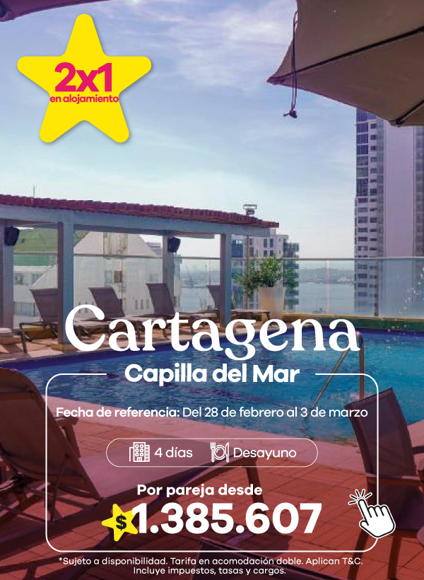 Con Viajes Éxito podrás viajar cómodo, seguro y a gusto al destino que desees en Colombia y el mundo para vivir unas vacaciones como las has soñado, disfrutando de toda la comodidad del hotel que buscas. En nuestra agencia tenemos una amplia oferta de productos y servicios para ofrecerte toda la calidad, por lo que en nuestra página web encontrarás hoteles baratos de muchas categorías para que escojas el que mejor se ajuste a tus necesidades y tu búsqueda. Encuentra hoteles cerca a las playas, en las mejores zonas y con excelentes servicios de habitaciones, alimentación, entretenimiento y mucho más al mejor precio. En Viajes Éxito encuentras hoteles baratos en Bogotá, Medellín, Cali, Cartagena, Santa Marta, Cancún, Panamá, Estados Unidos y muchas otras ciudades. Explora nuestro sitio web, compara los precios y planes que te ofrecemos, escoge el destino que más te guste y disfrutas de unas vacaciones soñadas.