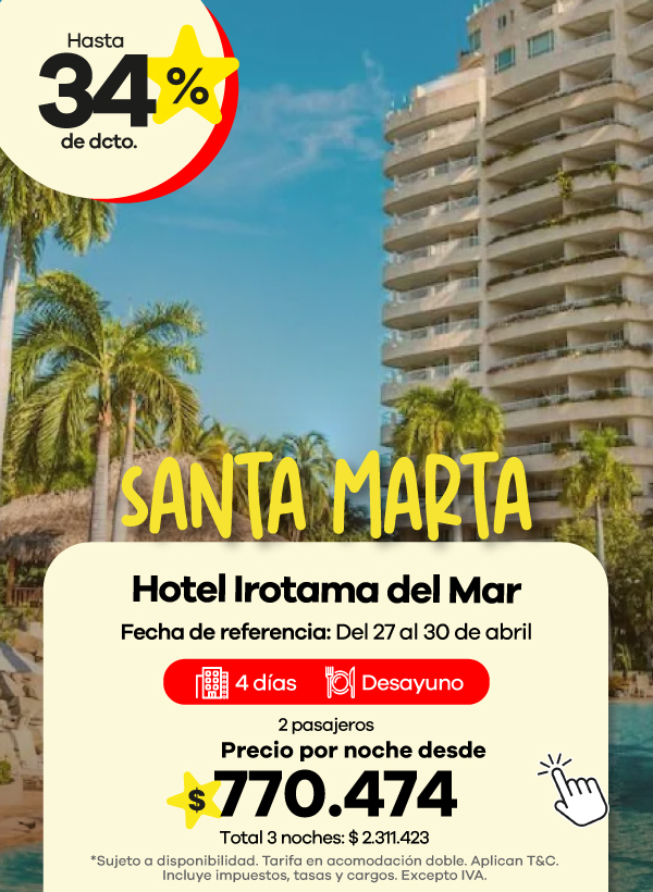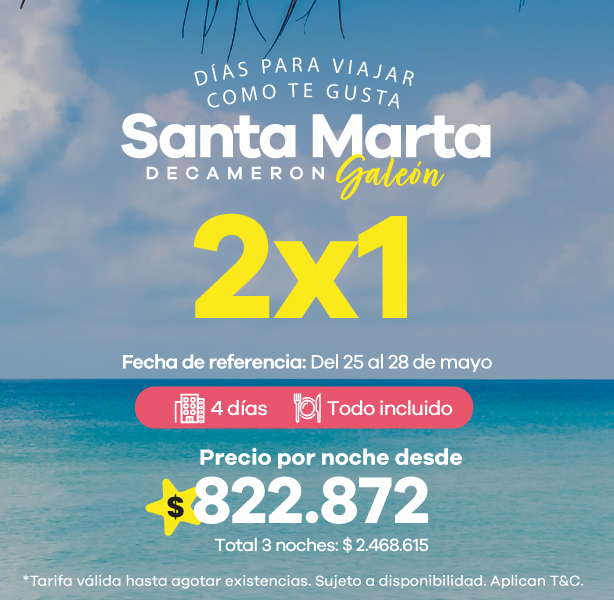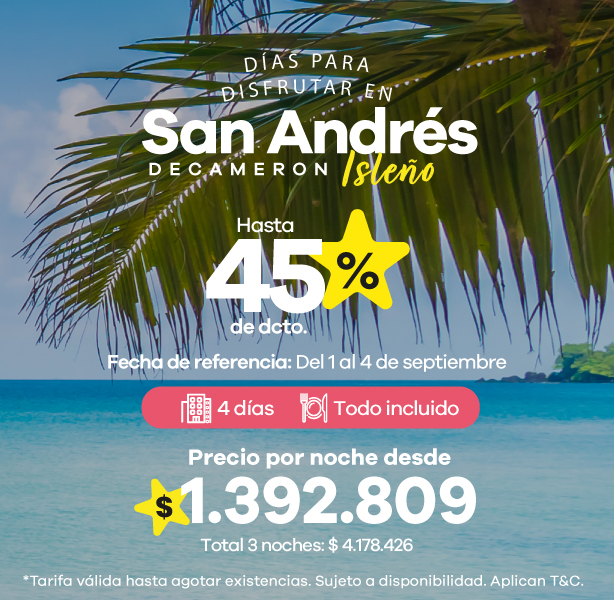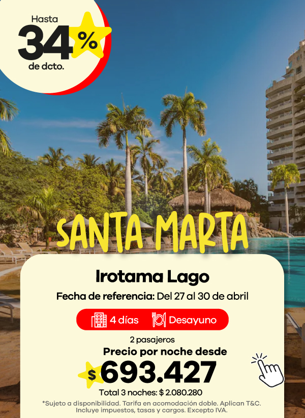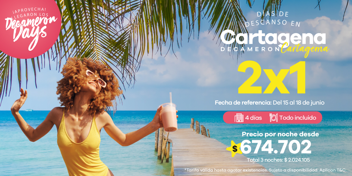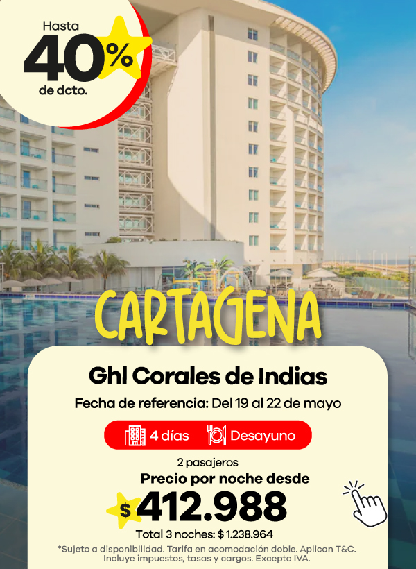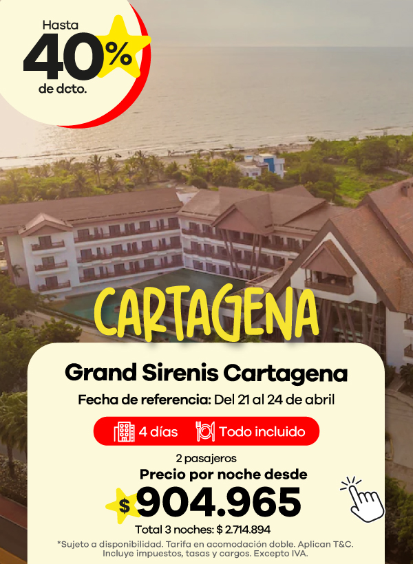 Encuentra ofertas Outlet de viajes con descuentos en hoteles a destinos como Cartagena, San Andrés y Santa Marta.