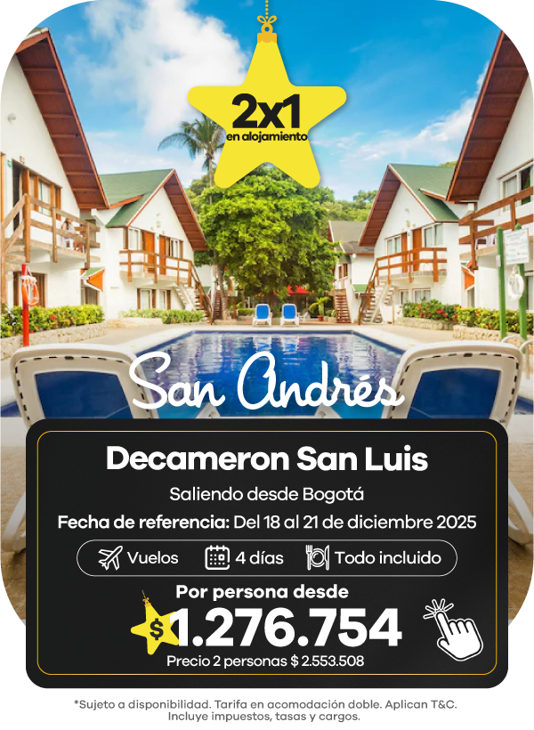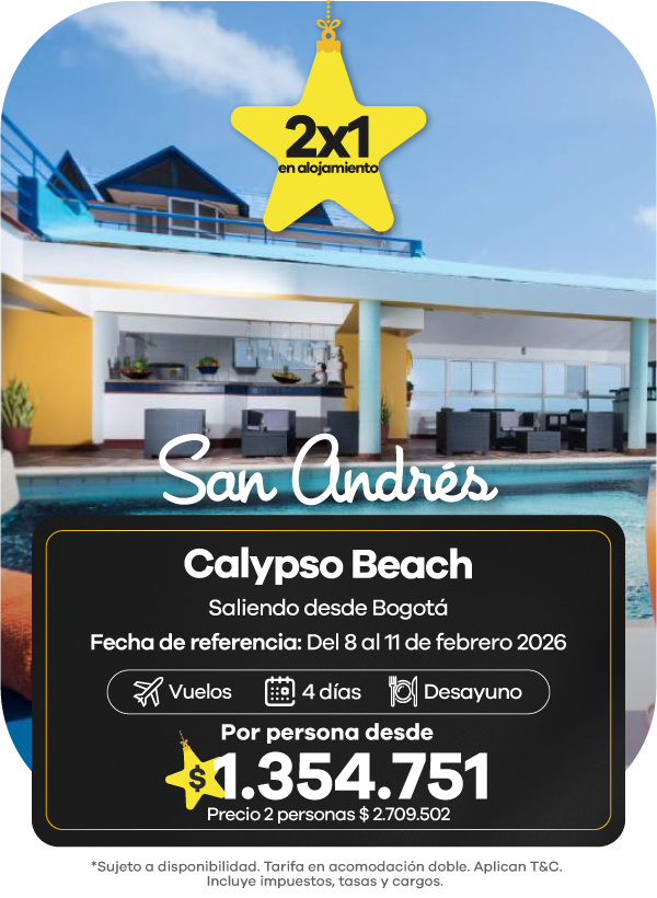 En Viajes Éxito encontrarás una amplia oferta de paquetes de viajes que incluyen todo lo que necesitas para disfrutar al máximo. Vive experiencias únicas con nuestros viajes a Panamá, sumérgete en la magia del Caribe con los planes a Punta Cana, o disfruta de playas y cultura con los mejores viajes a San Andrés.