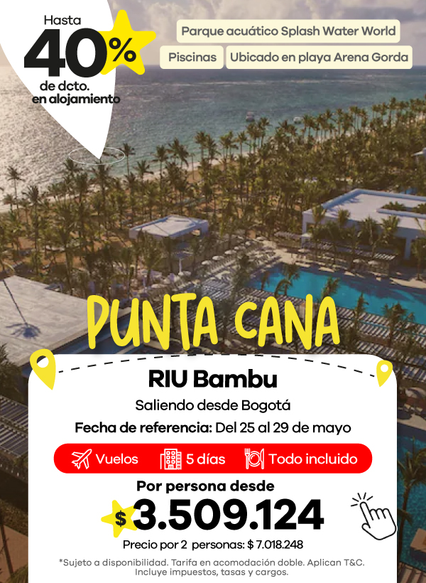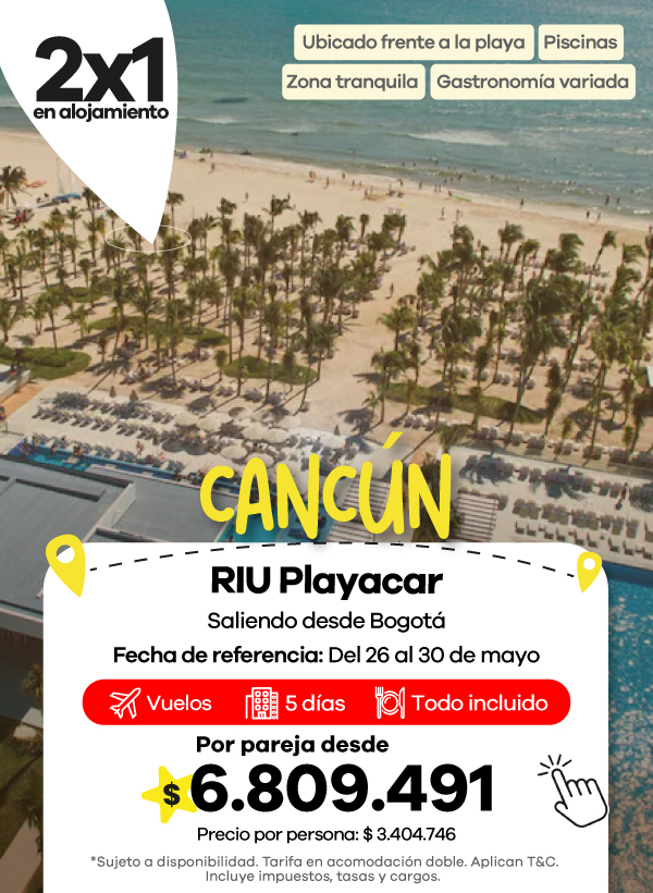 Hoteles RIU es una cadena de origen español con más de 60 años de experiencia en el servicio de alojamiento con presencia en más de 20 países alrededor del mundo, ofreciendo los mejores hoteles y servicios a sus huéspedes, para brindarles un viaje lleno de tranquilidad y confort en todo momento. En Viajes Éxito encuentras todo lo que buscas para que tus vacaciones sean eso que deseas, por eso te invitamos a comprar tus paquetes de viaje con nosotros y hospedarte en Hoteles RIU de Cancún, en México, o Punta Cana en República Dominicana. Disfruta de la magia del Caribe, de hermosas playas y atardeceres que te darán las mejores imágenes y fotografías, con toda la comodidad que los Hoteles RIU tienen para ti. Reserva en Viajes Éxito y conoce los encantadores paisajes de Arena Gorda, en Punta Cana o la Zona Corazone, en Cancún, donde vas a vivir grandes emociones.